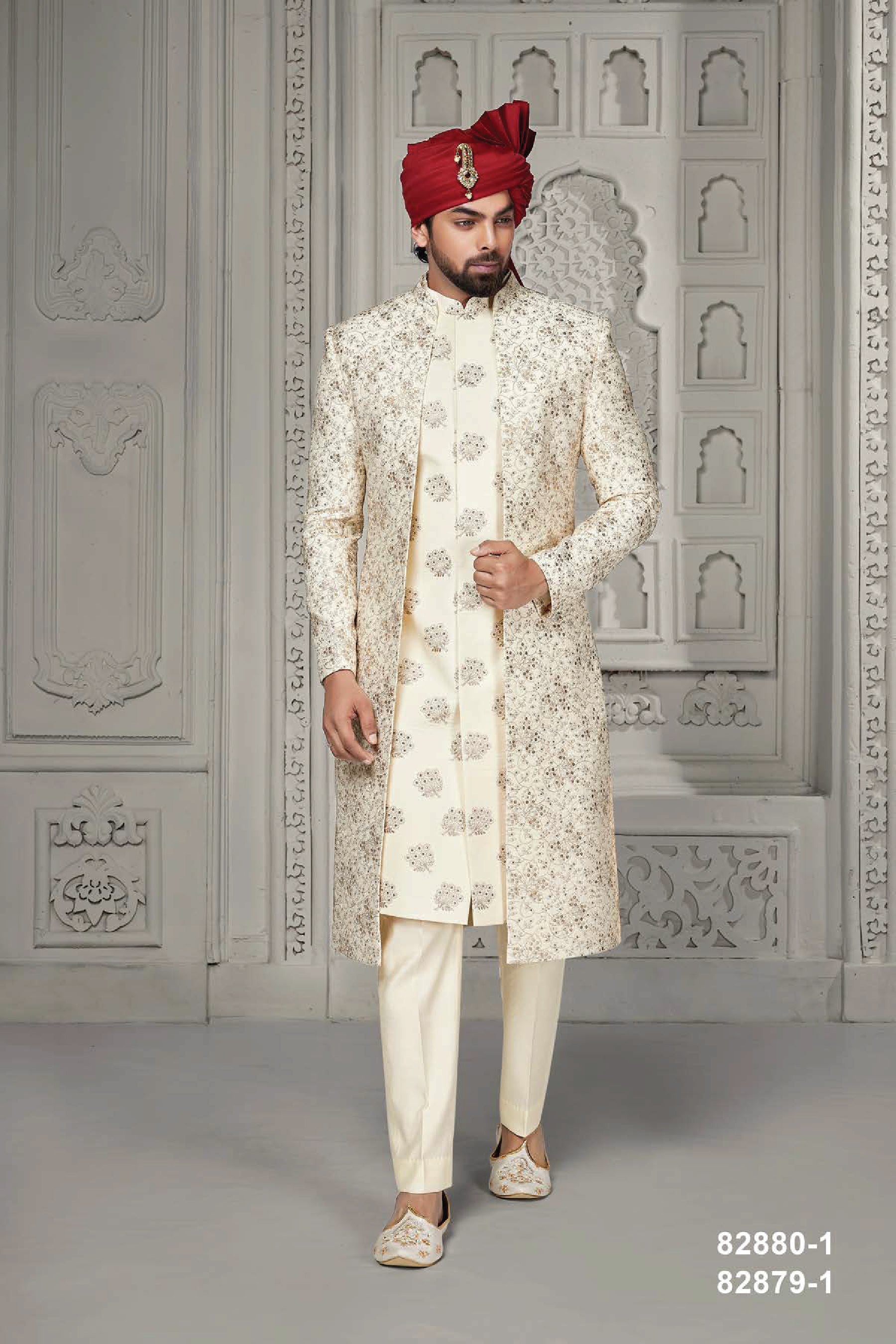 "Introducing our Cream Open Indo with Flowered Design: A blend of elegance and grace. Crafted with precision, this exquisite piece features intricate floral motifs on a creamy canvas, evoking a sense of timeless beauty. Its open-front design adds a contemporary twist, making it perfect for any occasion. Elevate your wardrobe with this captivating ensemble, designed to make you stand out with effortless sophistication."
